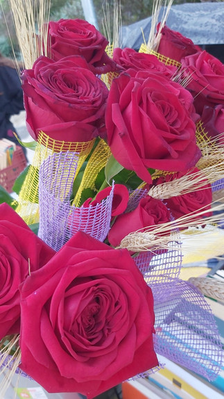 Durant tot el dia les monitores vem estar venent roses i llibres tot i el mal temps.
